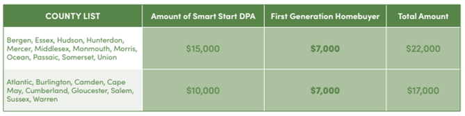 - $22,000 for down payment & closing costs when paired with DPA in certain NJ counties